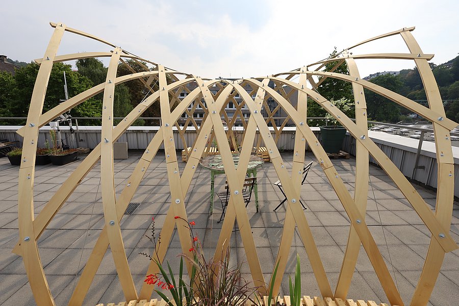 Bild: Knotshell - Pavillon von 2022 auf der Dachterrasse des Gebäude HC.